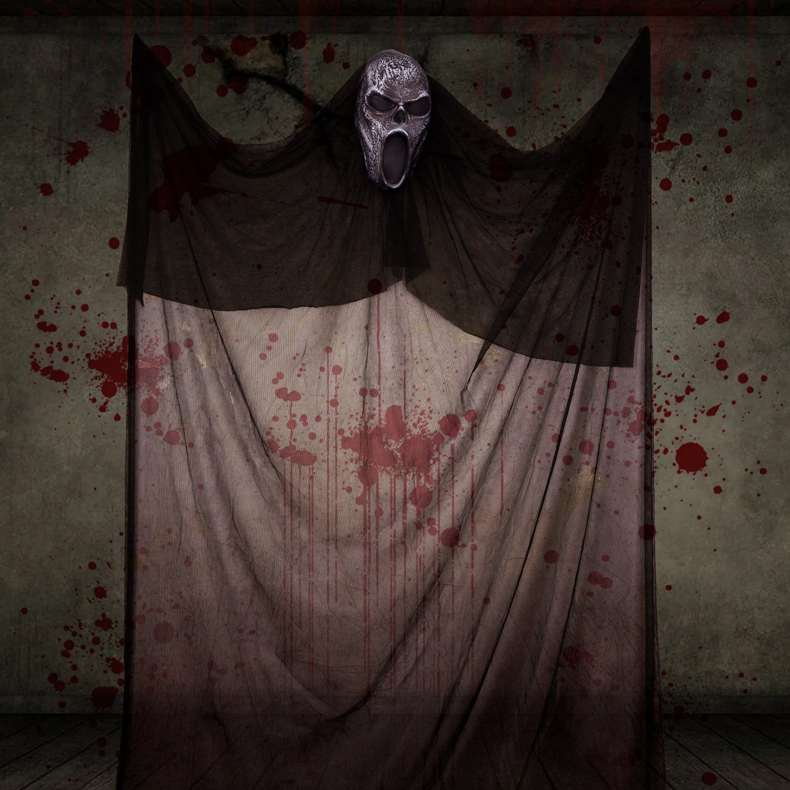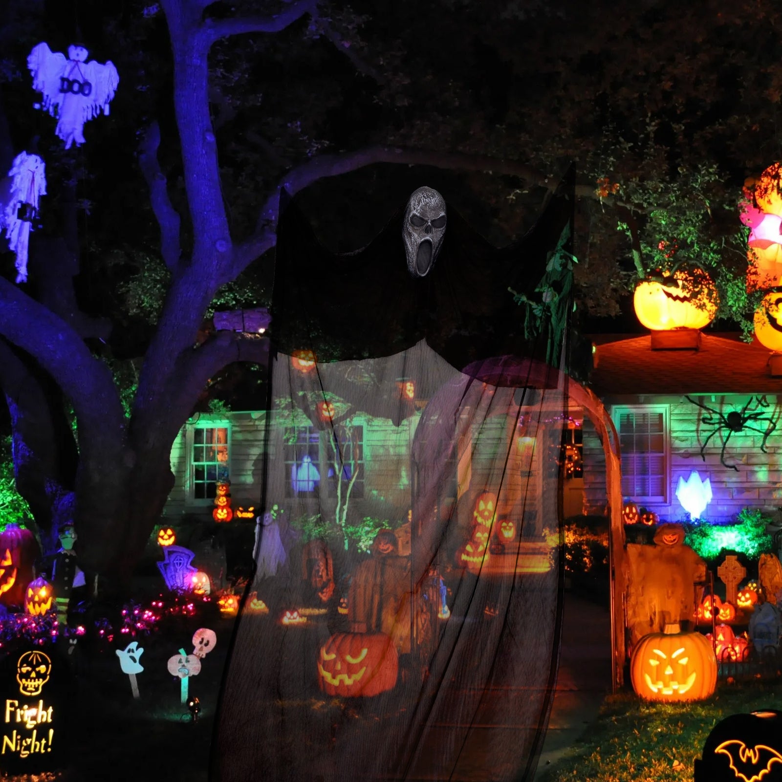 SUMKIA LIFE Halloween Ghost Hanging Decorations, Scary Hanging Reaper, Creepy Mask Flying Ghost for Haunted House, Yard Home Party Indoor Outdoor Decor (Black Ghost Hanging)