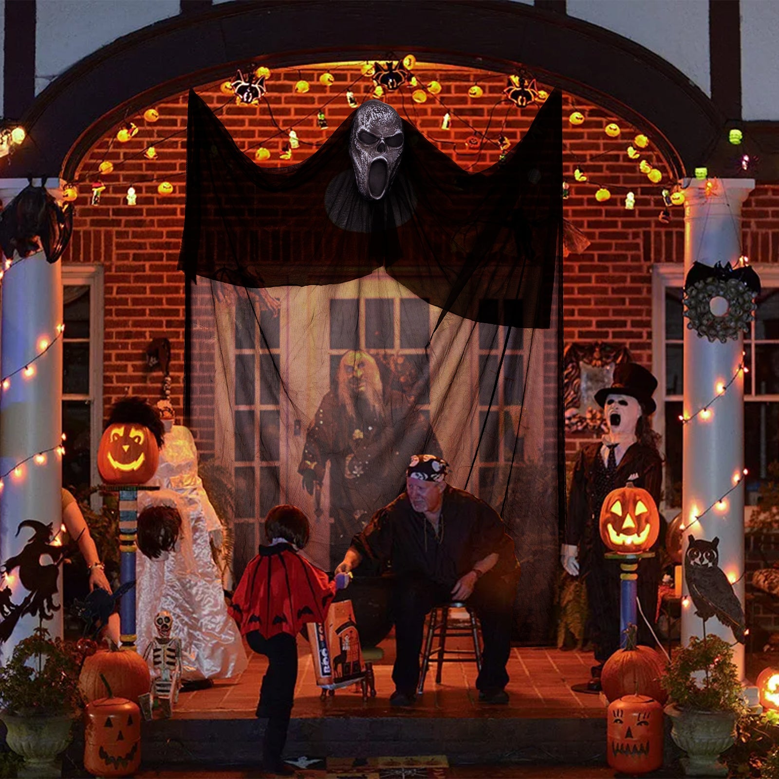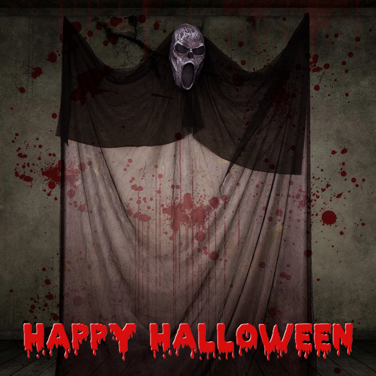 【Larger Size & Light Weight Flying Gauze clearance】 This halloween hanging ghost is made of black pvc plastic and polyester, lightweight, gauze, looks translucent, and stretches 300CM (long)x180CM (wide) when hanging to make the flowing chiffon look more like a ghost's coat.