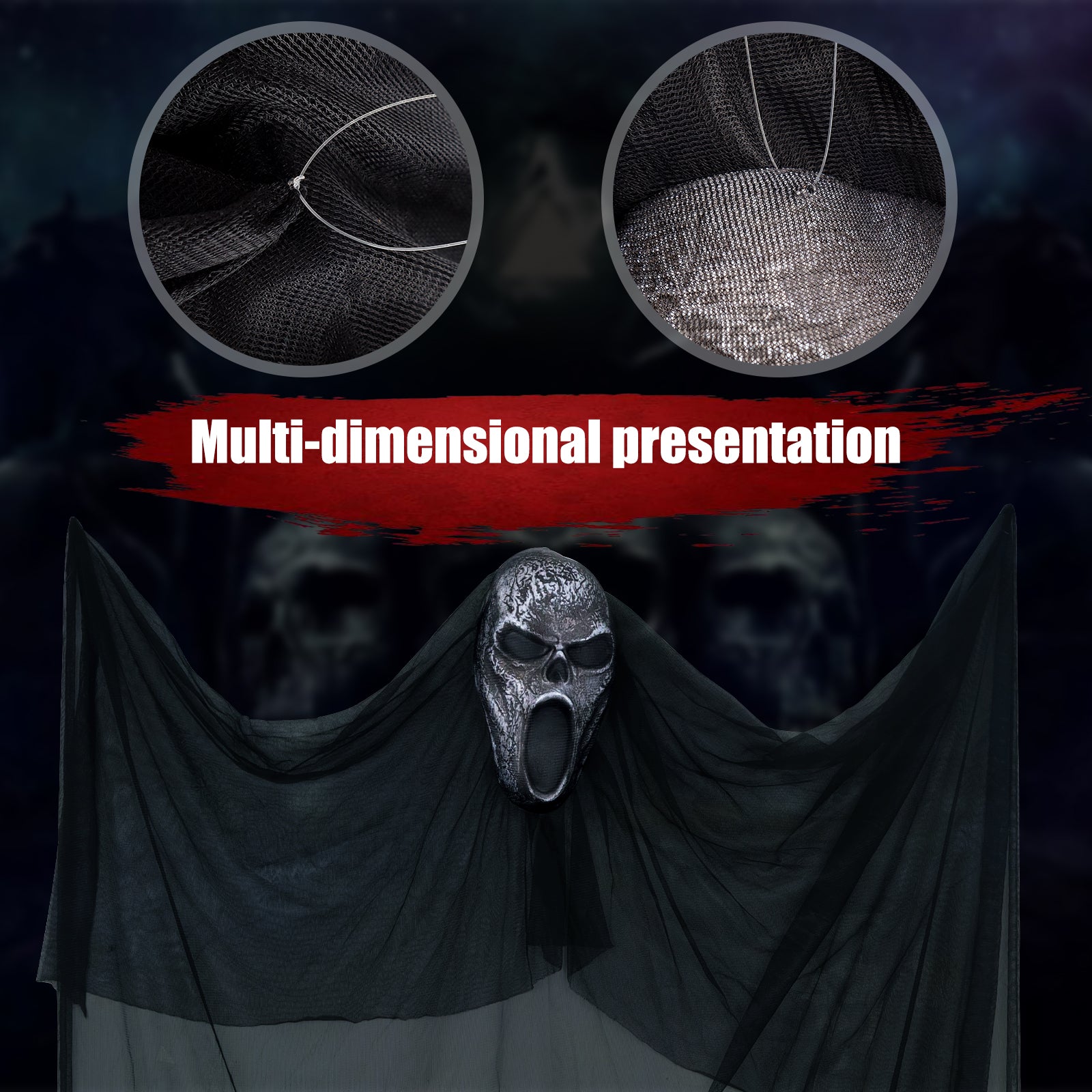 【Easy to decorate】There is a fishing line on the top of the ghost, and the mask can be easily fixed to a tree, wall, bar, yard, balcony, porch or eave through the top fishing line. It can also be vertical, and the ethereal ghost feeling when it moves in the wind makes people feel the festive atmosphere.