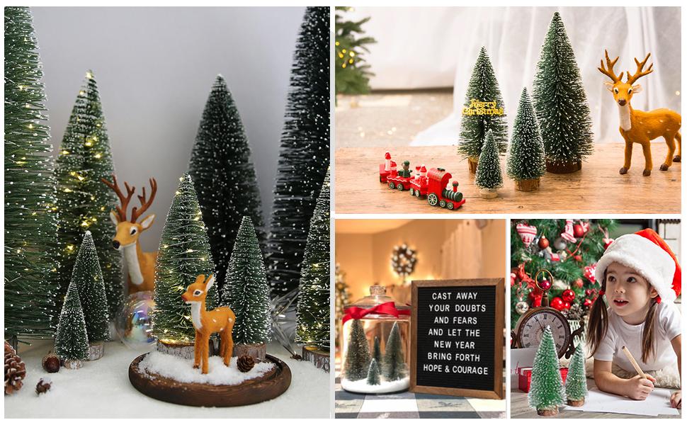 - ☀HAPPY CHRISTMAS - Mini pine trees with snow effect, they are mounted on a wooden base, make it stand easily, create your mini winter village scene.