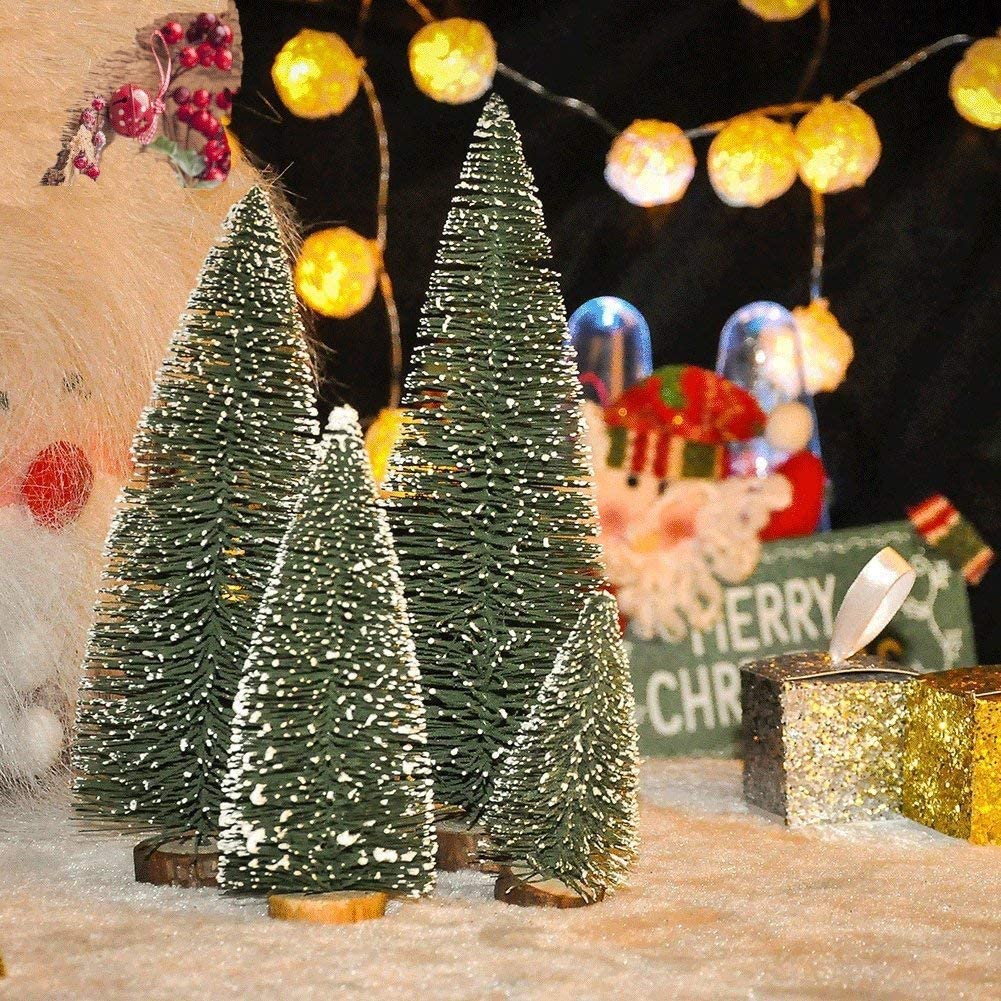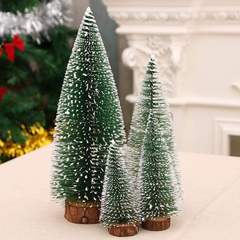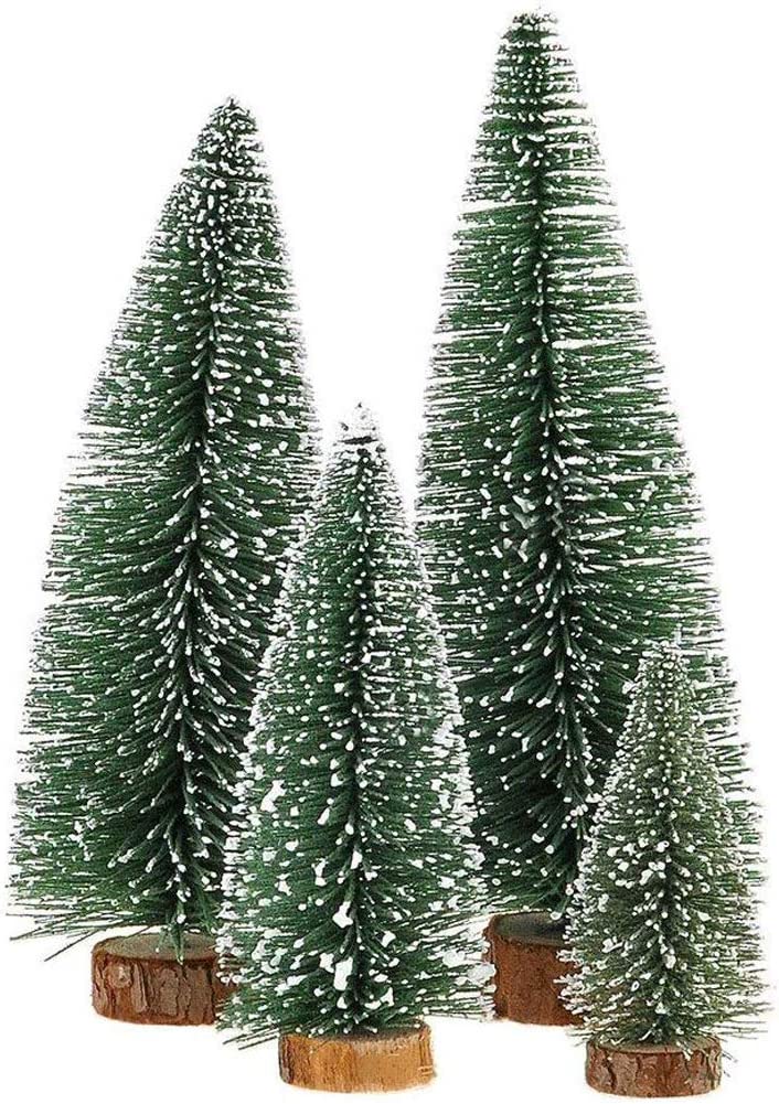 SUMKIA LIFE Miniature Christmas Tree, Mini Ornaments Tabletop Trees, miniture snowing pin trees with Wooden Bases FOR Xmas Holiday Party Home Decor (4PCS)